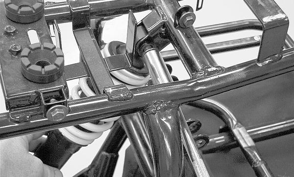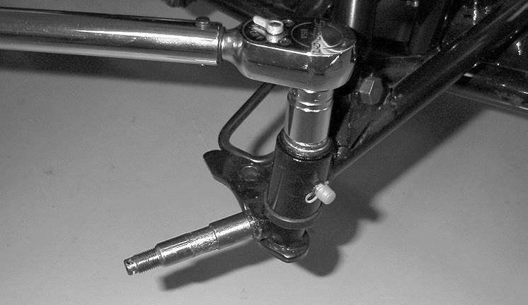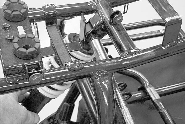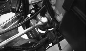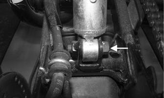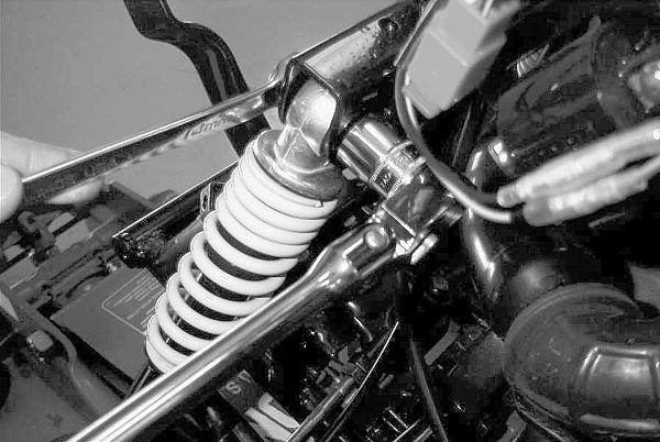 2.Remove the cap screw and self-locking nut securing each front shock absorber to the frame.