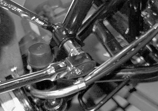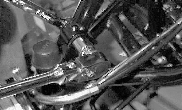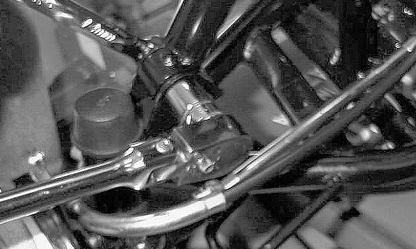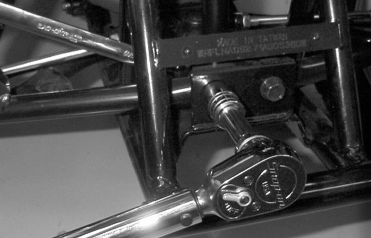 7.Remove the long cap screw and self-locking nut securing the front of the swing arm to the frame brackets; then remove the swing arm from the frame.