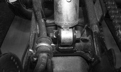 6.Remove the cap screw securing the shock absorber to the swing arm.
