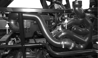 REMOVING 1.Remove the seat, seat back, and seat base; then remove the floor and gas tank. 2.Remove the right-side storage box. 3.Remove the cap screw, lock nut, and clamp securing the intake duct and duct tube assembly. Then remove the assembly.