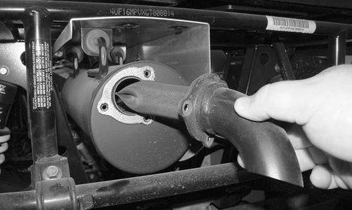 1.Remove the cap screws securing the spark arrester screen assembly to the muffler; then loosen and remove the spark arrester. Account for a gasket and wave washer. ! WARNING