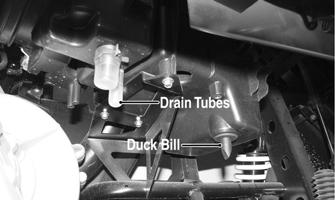 1.Inspect the “duck-bill” drain beneath the main housing for debris and for proper sealing. 2.Remove the drain tube and clean out any water, oil, or debris. Reinstall and secure with the clamp.