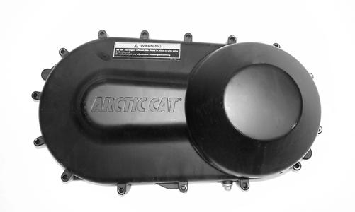 3.With the vehicle in neutral, rotate the V-belt and clutches counterclockwise until the V-belt is flush with the top of the driven pulley. 4.Place the CVT cover gasket into position; then install the cover and secure with the cap screws making sure the different-lengthed cap screws are in their proper location. On the 700, tighten the cap screws with washers to 44 in.-lb. On the 500, tighten the cap screws to 8 ft-lb.