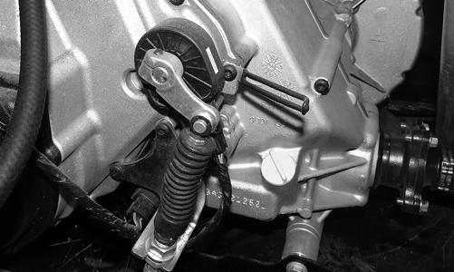 7.Install one of the CVT cover cap screws into the driven pulley fixed face; then turn the cap screw clockwise to spread the pulley faces. Remove the Vbelt.