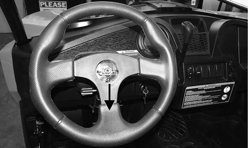 Secure with screws and tighten securely. Do not over-tighten. 12.Connect the tilt steering mechanism and tighten securely. Install the shift knob. 13.Install the front access panel, front fenders, and hood. 14.Install the steering wheel (see Steering Wheel in this section). REMOVING RACK AND PINION NOTE: If equipped, the EPS assembly must be