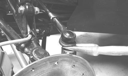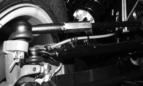 4.Install the EPS assembly; then tighten the cap screws (from step 2) to 20 ft-lb. 5. Install the wheels and using a crisscross pattern, tighten the wheel nuts in 20 ft-lb increments to a final torque of 40 ft-lb (steel wheel), 60 ft-lb (aluminum wheel w/black nuts), or 80 ft-lb (aluminum wheel w/ chrome nuts). REMOVING TIE RODS 1.Remove the steering rack assembly (see REMOV-