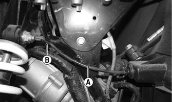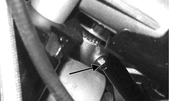 8.Tighten the cap screw (from step 6) to 25 ft-lb. 9.Install the front storage box. 10.Connect the regulator/rectifier and install the coolant bottle to the front storage box. Tighten the regulator/ rectifier to 8 ft-lb and the coolant bottle to 48 in.-lb. 11.Install the dash and connect the electrical connectors.