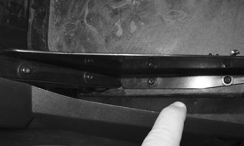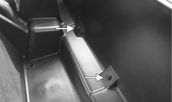 3.Remove the remaining cap screws securing the inner fender from the inside of the headlight assembly, storage tray, and frame.
