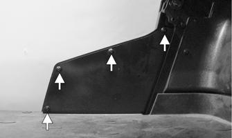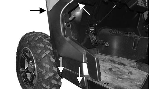 INSTALLING 1.Install the inner fenders and secure using the existing cap screws. 2.Install the access panel and secure with the push pins. 3.Secure the outer fenders to the vehicle using the existing cap screws.