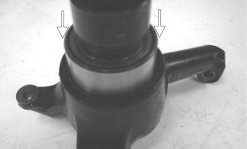 CLEANING AND INSPECTING 1.Clean all knuckle components. 2.Inspect the bearing for pits, scoring, rusting, or premature wear. 3.Inspect the knuckle for cracks, breaks, or galling of the bearing surface. ASSEMBLING AND INSTALLING 1.Using a suitable press and driver, press the bearing into the knuckle until firmly seated; then install the snap ring.