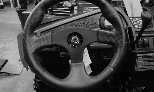 2.Secure the tilt steering sub-assembly to the support lift with the cap screw and new lock nut. Connect the headlight switch connector; then install the steel access panel with two cap screws. 3.Install and connect the gauge to the dashboard. 4.From under the dash, connect the ignition switch, drive select switch, override switch, and accessory plugs. 5.Install and secure the remaining cap screws around the perimeter of the dashboard including the one behind the center dash pad. 6.Install both inner front fenders; then install the outer fenders.