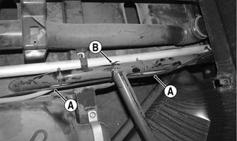 7.Install the steering shaft housing. Secure to the frame with two cap screws and nuts. Tighten to 20 ft-lb.