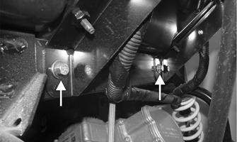 9.Disconnect the two EPS connectors. 10.Remove the cap screws securing the EPS assembly to the frame; then remove the cap screw securing the rack coupler to the EPS output shaft.