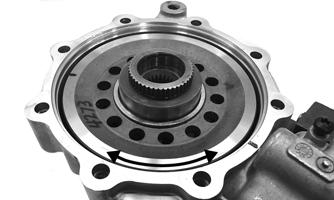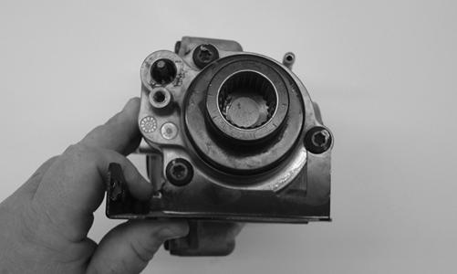 1.Using a T-40 torx wrench, remove the cap screws securing the pinion housing. Account for the coupler, fork, shuttle shaft with O-ring, and spring.