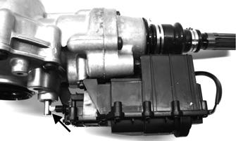 The front drive actuator is located on the left side of the front differential input housing. With the engine stopped and the ignition switch in the ON position, a momentary “whirring” sound can be heard each time the drive select switch is shifted. If no sound is heard, see Electrical System. If the actuator runs constantly or makes squealing or grinding sounds, the actuator must be replaced. REMOVING 1.Select LOCK on the drive select switch; then disconnect the connector on the actuator harness. Remove the front six cap screws securing the skid plate to the frame.