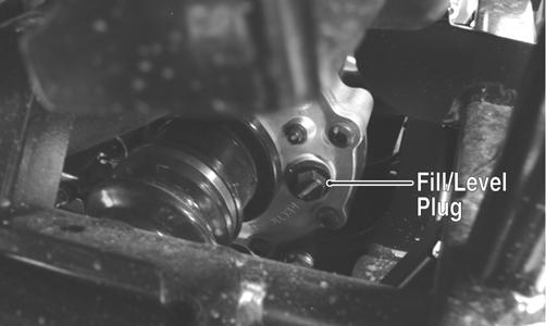 REMOVING 1.Remove the hubs (see Hub in this section). 2.Remove the belly panel. 3.Remove the drain plug and drain the gear lubricant into a drain pan; then install the plug and tighten to 45 in.-lb.