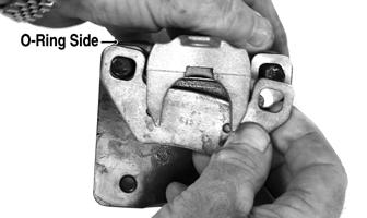 3.Apply high-temperature silicone grease (supplied with the O-ring kit) to the inside of the caliper holder bores and O-rings; then install the four O-rings into the caliper.
