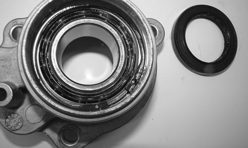 5.Remove the snap ring securing the input shaft bearing; then place the pinion housing in a press and remove the bearing.