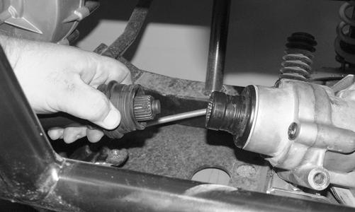 9.Push the axle shaft toward the differential to release the “plunge” coupler; then remove the axle from the differential. Repeat for the opposite side.
