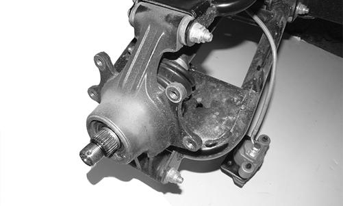 5.Remove the lower and upper ball joint cap screws taking care not to strip the threads on the ball joint shaft; then using a rubber mallet, tap the end of the axle and free it from the knuckle assembly.