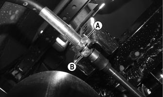 Tighten the nuts (A) and (B) to 8 ft-lb. 6.Check each gear shift position for proper gear selection and make sure the proper icon illuminates on the LCD.