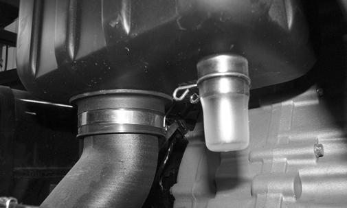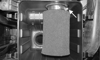 13.Clean any dirt or debris from inside the filter housing. 14.Inspect the drain cap beneath the main housing for debris and for proper sealing. From under the vehicle check the drain located on the bottom of the intake tube.