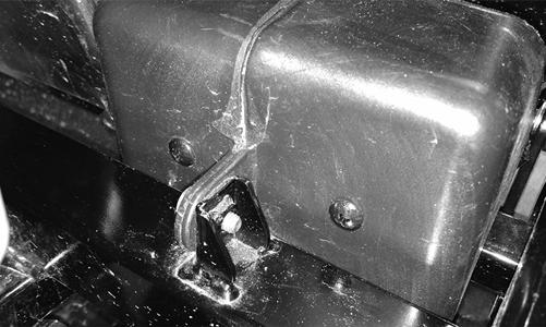 3.Remove the reinstallable plastic rivets securing the left rear splash panel; then remove the panel.