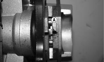 INSPECTING HOSES Carefully inspect the hydraulic brake hoses for cracks or other damage. If found, the brake hoses must be replaced. CHECKING/REPLACING PADS The clearance between the brake pads and brake discs is adjusted automatically as the brake pads wear. The only maintenance that is required is replacement of the brake pads when they show excessive wear. Check the thickness of each of the brake pads as follows. 1.Remove the wheel corresponding to the brake being checked. 2.If the brake pad friction material has worn to the point of the wear groove (A) no longer being visible, replace the brake pads.