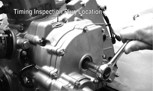 1.Remove the spark plug, timing inspection plug, and magneto cover plug; then remove the tappet covers (for more detailed information, see Engine/Transmission - Servicing Top-Side Components).
