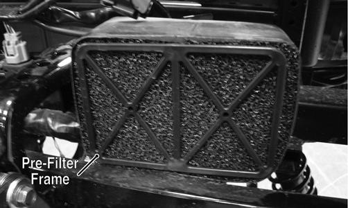 This vehicle is equipped with a pre-filter to filter dirt from the inlet air prior to reaching the main air filter. NOTE: The pre-filter is located above the front