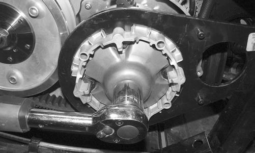 Make sure the movable drive face plate is fully engaged onto the splines of the clutch shaft before tightening the nut or false torque readings may occur. This will cause the assembly to loosen damaging the shaft and clutch face plate.