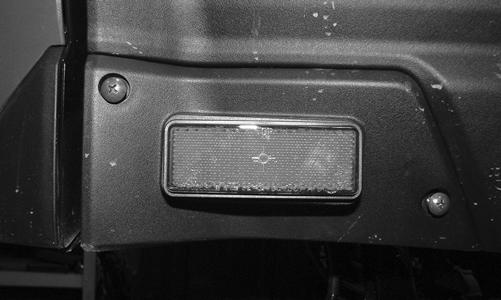 2.Inspect all wires for corroding, pinching, and cracking. 3.Inspect the bulb for wattage, voltage, and proper operation. INSTALLING 1.To install the reverse light, insert the bulb into the socket and turn clockwise. Insert the socket into the reverse light housing and secure with the two machine screws. 2.Secure the reverse light housing into the taillight assembly with the two screws and nut. 3.Place the rear fender onto the cargo box and secure with the six plastic screws. Secure the tie-down with the two nuts and cap screws. 4.Connect the taillight/brakelight connector.