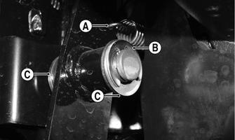 REMOVING Release the return spring (A) from the accelerator pedal, then remove the throttle cable from the pedal. Remove the E-clip (B); then remove the pedal. Account for the washers (C).