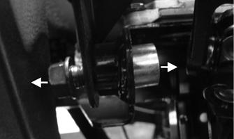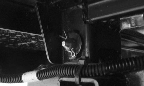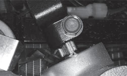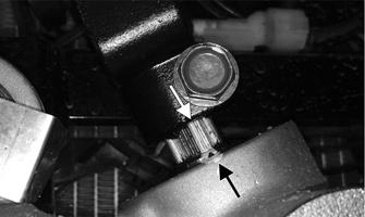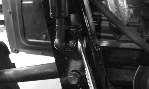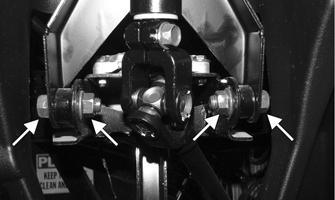 4.Remove the two nuts securing the cap screws at the steering shaft housing pivot point.
