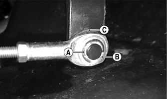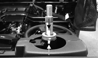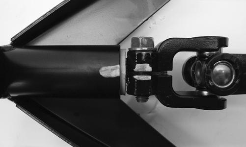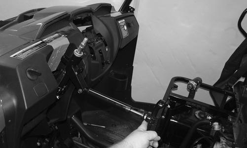 2.Install the bushing; then secure the bottom of the lift support to the steering column via the cap screw and nut. Tighten securely. 3.Install and secure the two cap screws located toward the outside edges of the dash to secure to the floorboard.