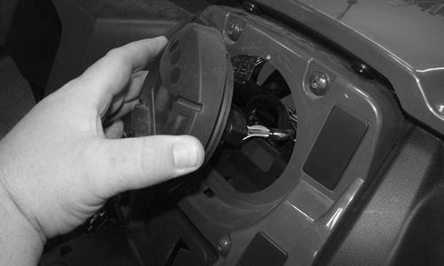 6.Connect the headlight switch connector and install the ignition switch to the center dash panel. Place the center dash panel into position and connect the 2WD/4WD switch, override switch, ignition switch, and 12V accessory outlet. Secure the center dash panel to the dashboard with the four Allen-head cap screws.
