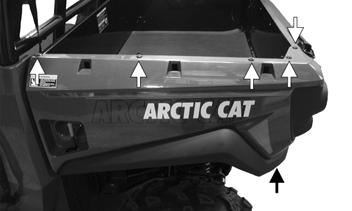 3.Remove the six plastic screws securing the rear fender to the cargo box. Remove the rear fender.