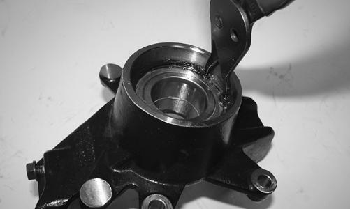 9.Remove the snap ring securing the bearing in the knuckle; then press the bearing out of the knuckle.