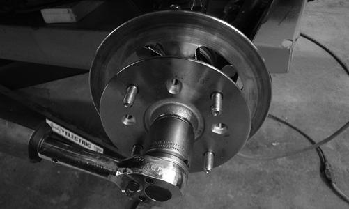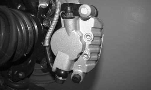 9.Secure the brake line to the knuckle; then secure the brake caliper to the knuckle with the two new