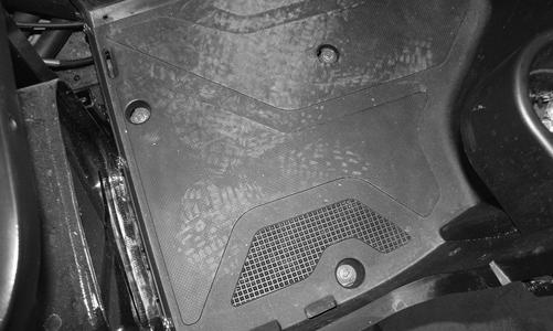 REMOVING 1.Remove the seat, steering wheel, shift lever handle, and steering column covers. 2.Remove the cap screws and plastic rivets securing the engine compartment panel to the frame; then remove the panel.