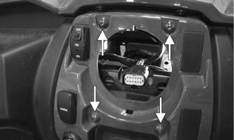 3.Remove and disconnect the instrument gauge; then remove the four Allen-head cap screws securing the center dash panel. Remove the ignition switch from the panel; then disconnect the 2WD/4WD switch, override switch, and accessory plug.