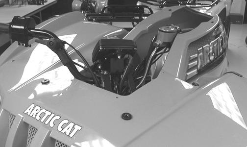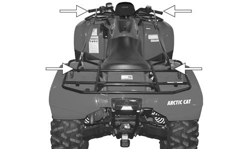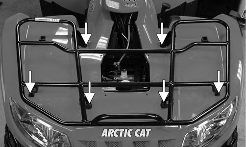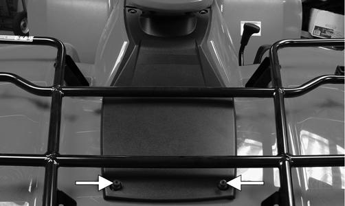 INSTALLING 1.Place the rack into position on the frame and front fender panel. Install the cap screws and lock nuts and finger-tighten only. 2.Install the two cap screws and lock nuts securing the rack to the fenders. Tighten all hardware securely.