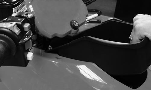 INSTALLING 1.Rotate the handlebar to the full-left position; then place the front body panel over the handlebar and rotate and lower into position.