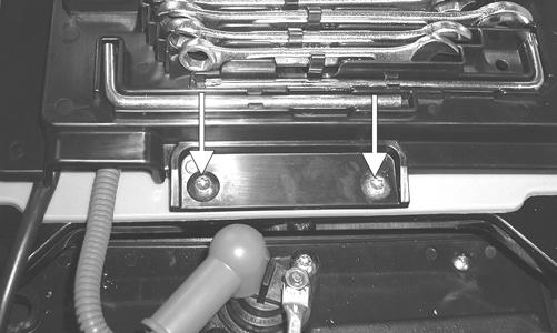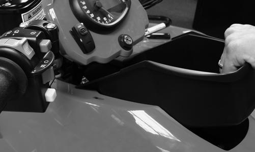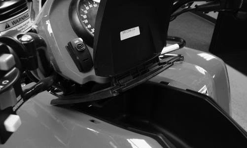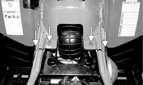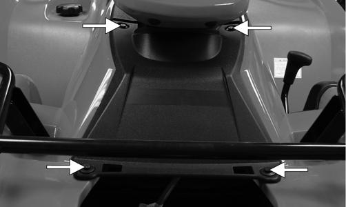 5.Remove the storage compartment. 6.Remove the four cap screws securing the handlebar caps and indicator display bracket to the steering post; then move the handlebar and gauge out of the way. Account for four handlebar caps.