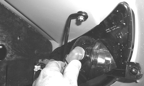 REMOVING 1.Unplug the three-prong connector and free the taillight wiring harness from the frame. 2.Remove the torx-head cap screws securing the taillight assembly to the body. Account for any washers. 3.Remove the taillight assembly.
