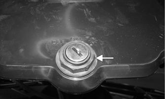 4.Disconnect the battery (negative cable first); then remove the battery. 5.Disconnect the taillight/brakelight; then remove the gas tank cap and lift off the rear body panel. Install the gas tank cap. NOTE: If the front body panel has not been