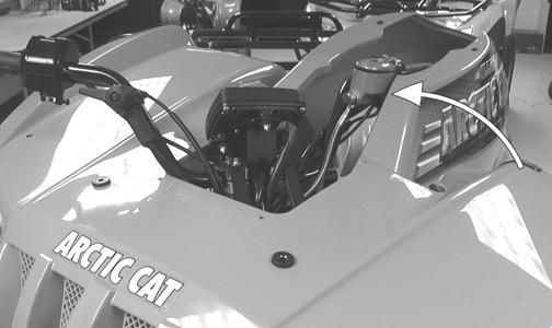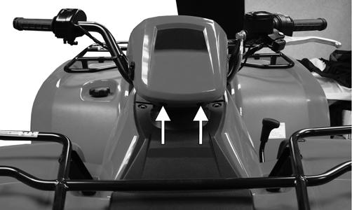 REMOVING 1.Remove the cap screws and lock nuts securing the rack to the frame and front fender panel. 2.Remove the front rack from the ATV.