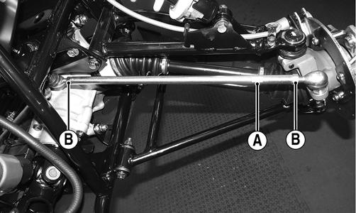 6.Using an open-ended wrench to hold the tie rod (A), loosen the right and left jam nuts (B).