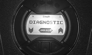 3.Press the center button (SELECT) to enter diagnostic mode; cycle the display by pressing either the left or right button to step to the desired function. NOTE: The gauge can be utilized dynamically