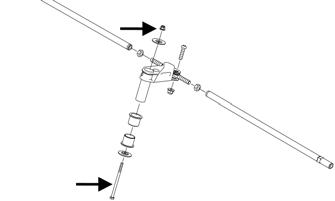 8.Remove the two cap screws and lock nuts securing the upper arm to the chassis.